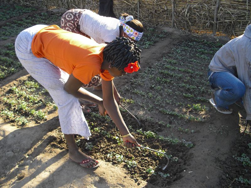 Bild: Auszubildende beim Anlegen von Pflanzbeeten