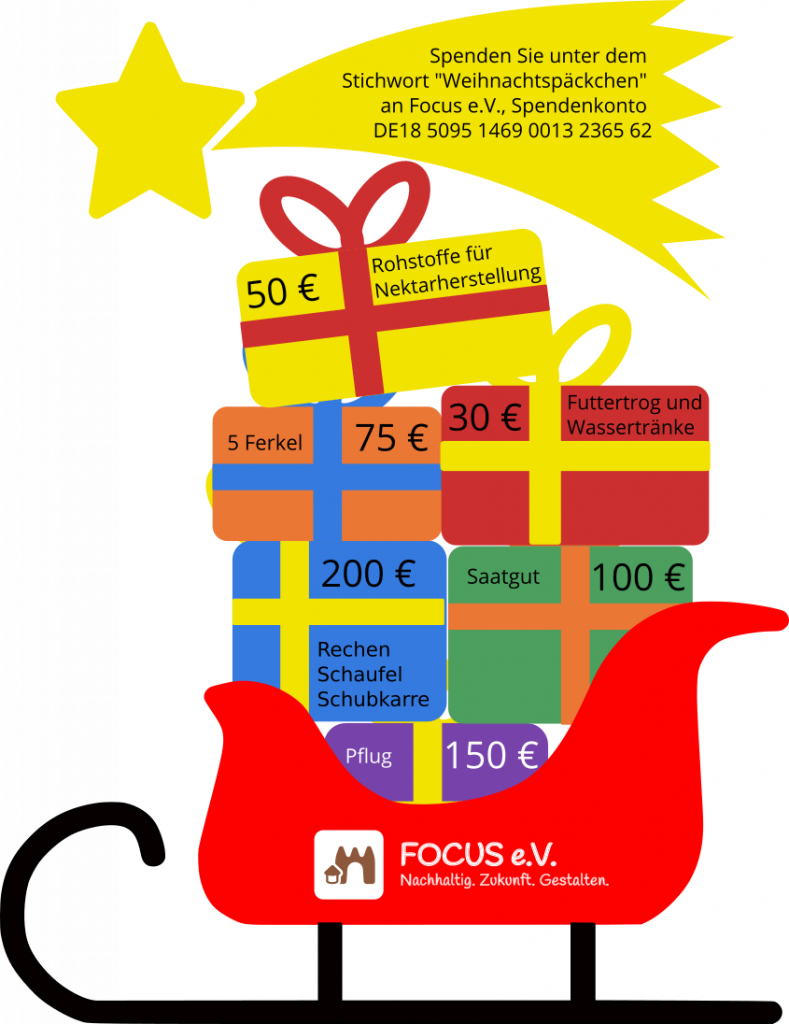 Spenden Sie unter dem Stichwort „Weihnachtspäckchen“ an Focus e.V.
